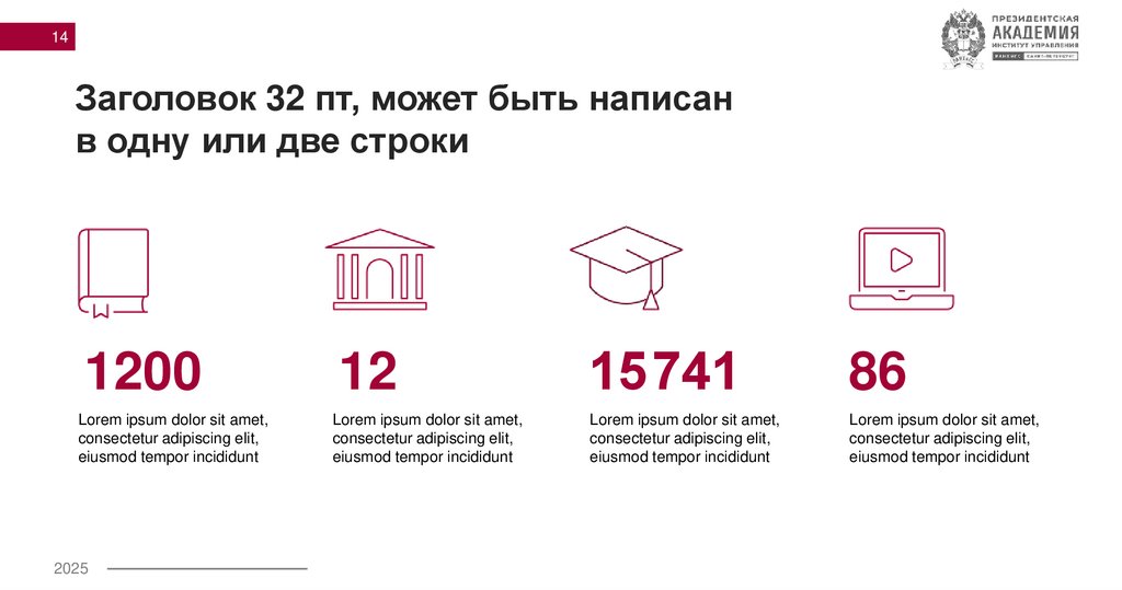 14. Заголовок 32 пт, может быть написан в одну или две строки