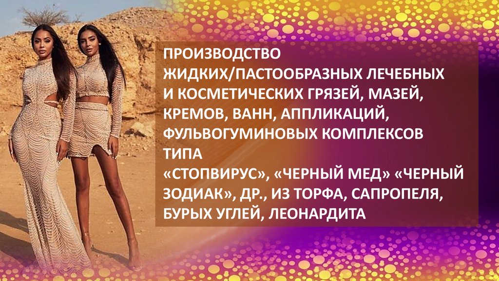 Производство жидких/пастообразных лечебных и косметических грязей, мазей, кремов, ванн, аппликаций, фульвогуминовых комплексов