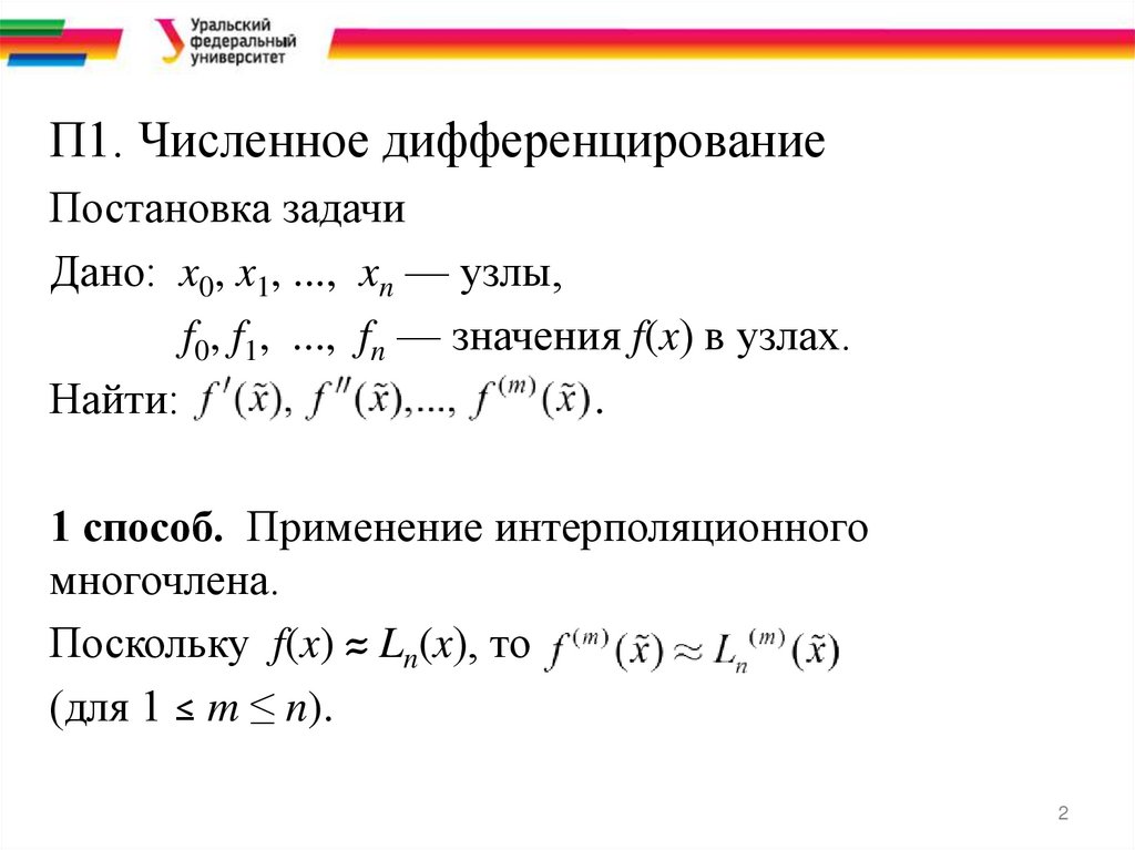 Численное дифференцирование. Решение ОДУ. Лекция 4