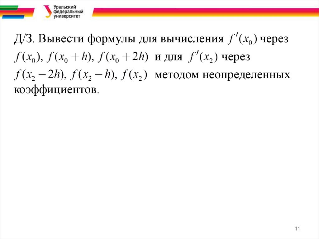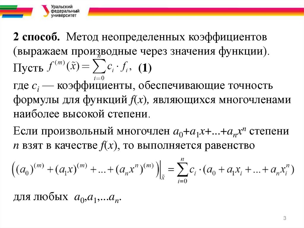 2 способ. Метод неопределенных коэффициентов(выражаем производные через значения функции).