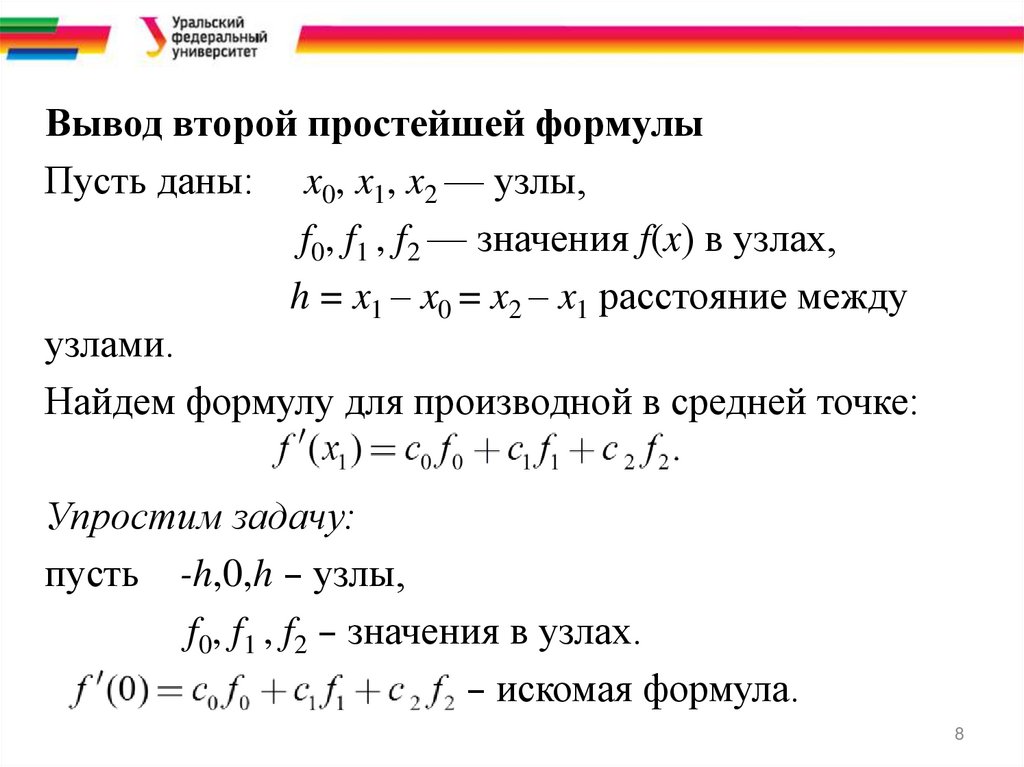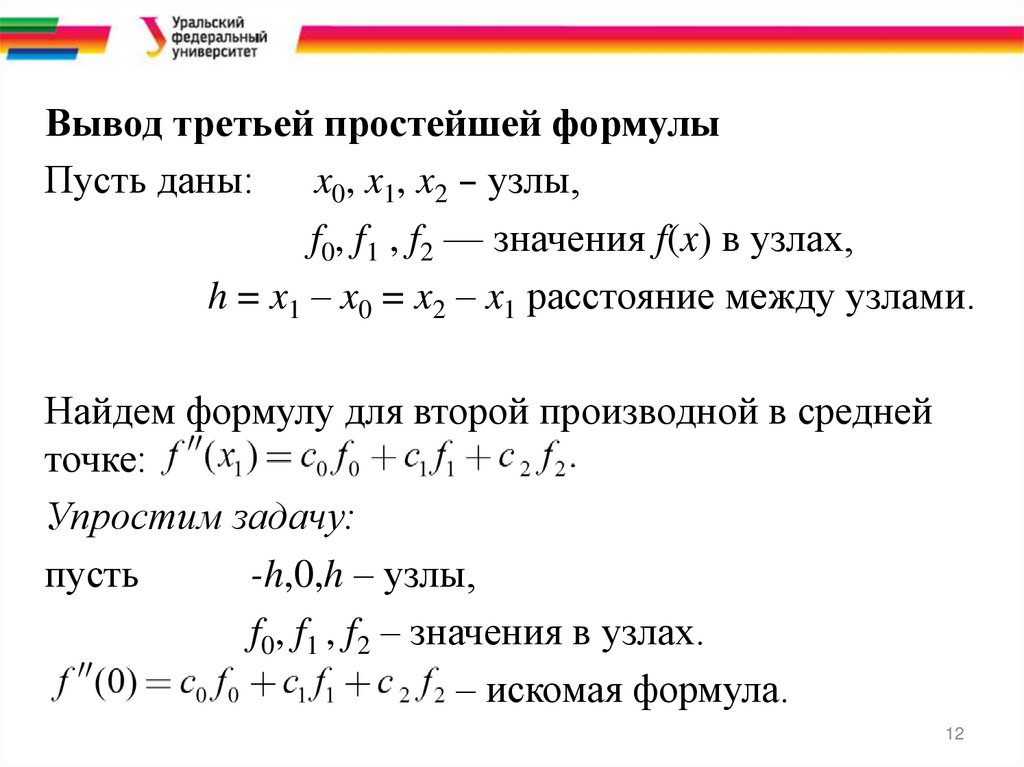 Вывод второй простейшей формулыПусть даны: x0, x1, x2 — узлы,
