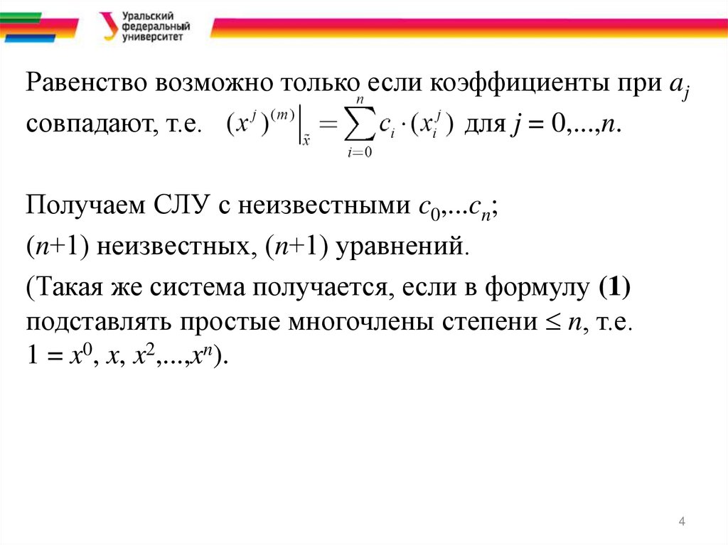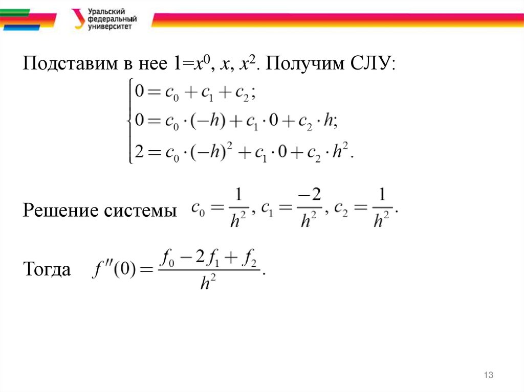 Подставим в нее 1=x0, x, x2. Получим СЛУ:Решение системы