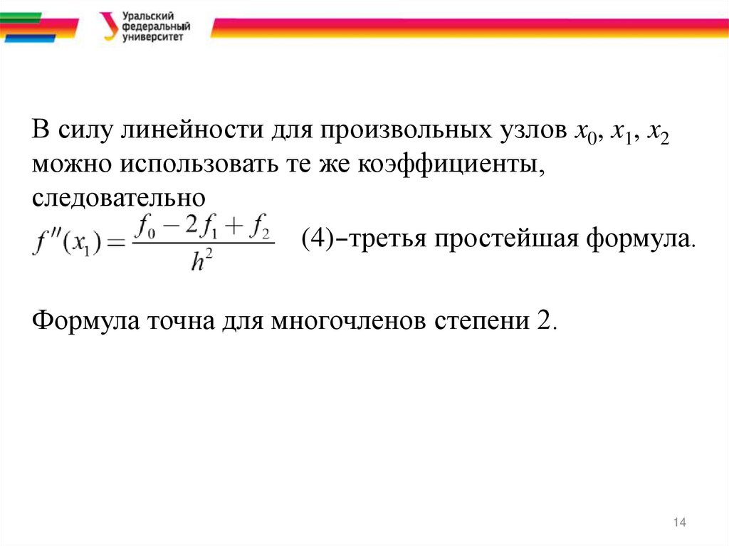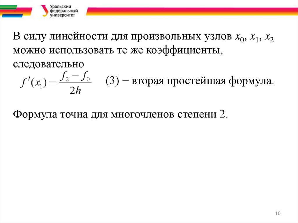 В силу линейности для произвольных узлов x0, x1, x2можно использовать те же коэффициенты,