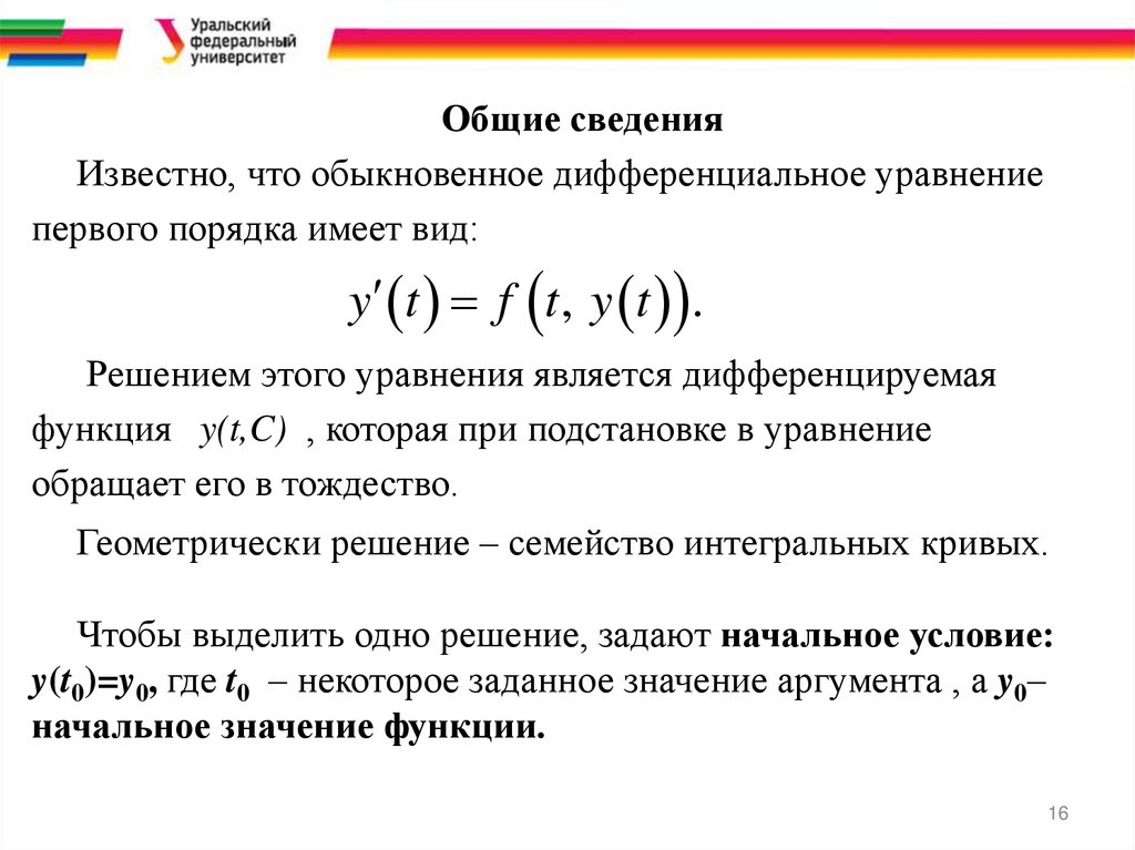 Рассмотрим задачу Коши для дифференциальногоуравнения y t f t, y t с начальным условием