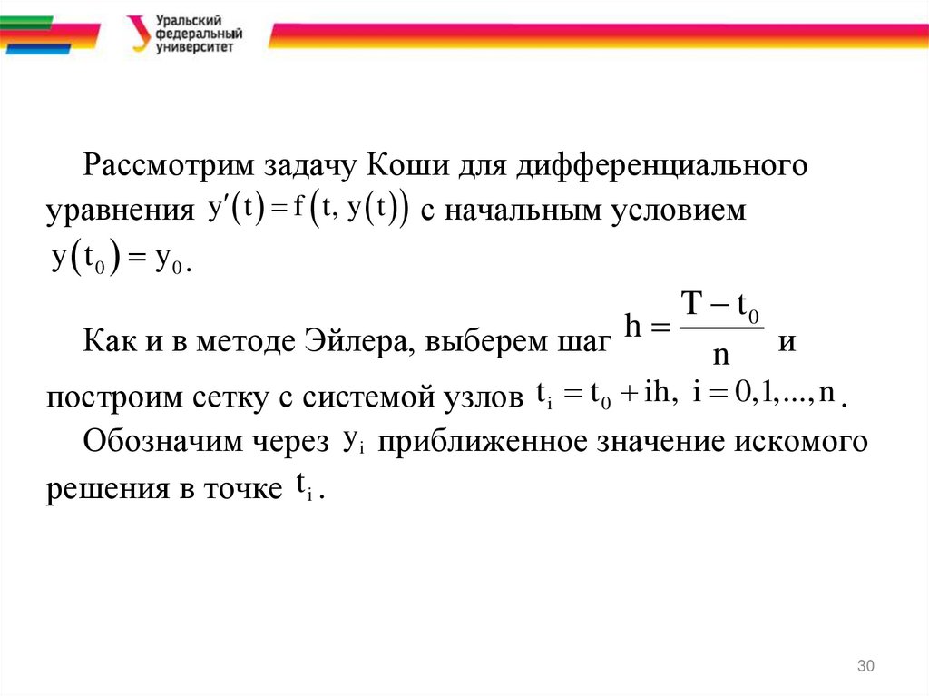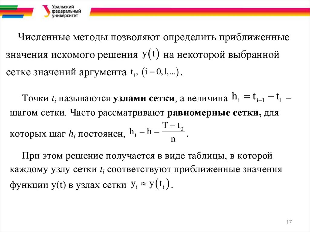 построим сетку с системой узлов t i t 0 ih, i 0,1,..., n .