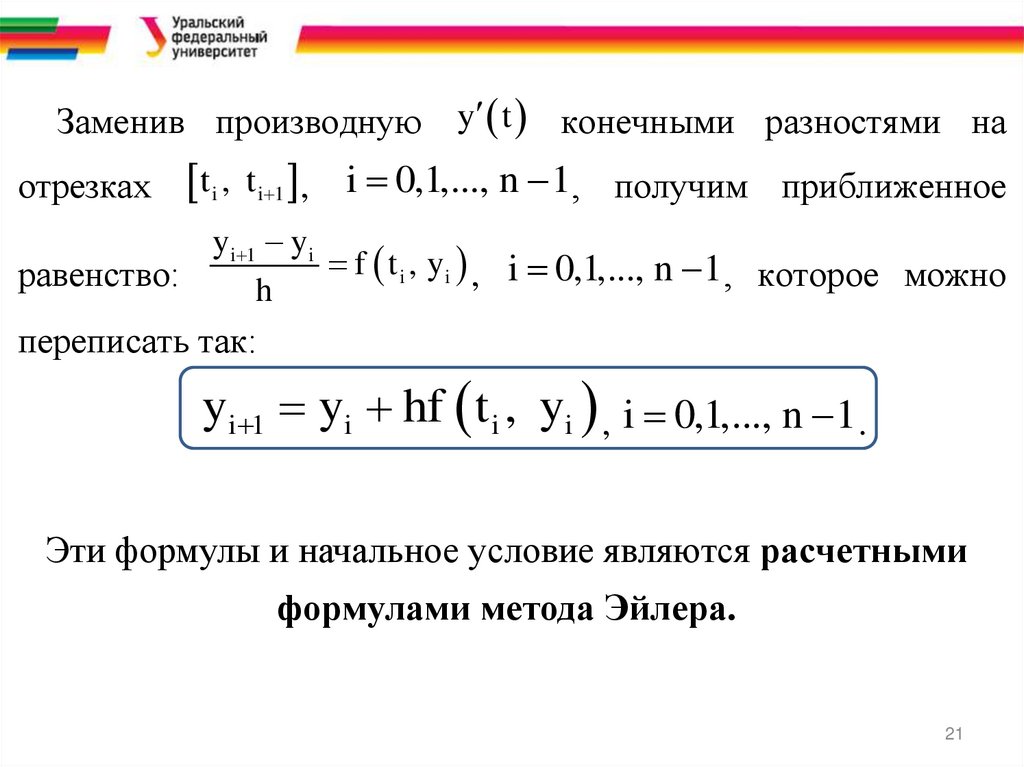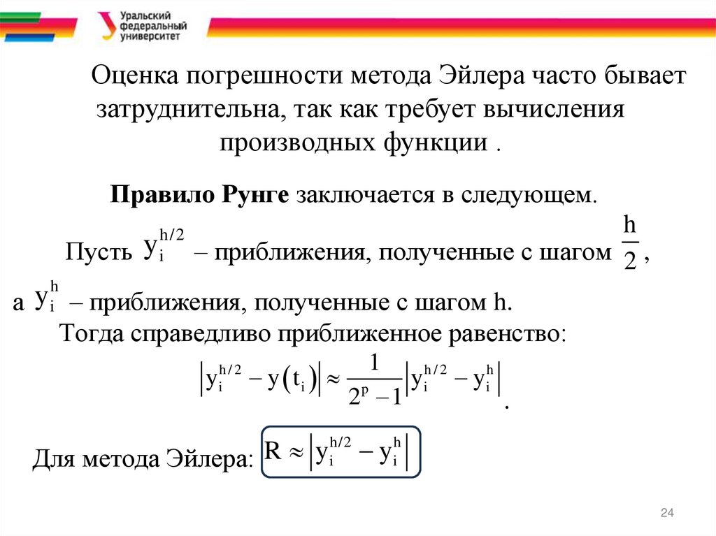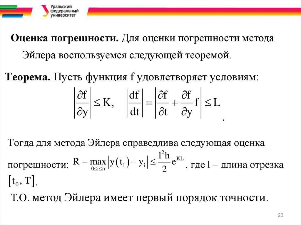 Оценка погрешности метода Эйлера часто бываетзатруднительна, так как требует вычисления