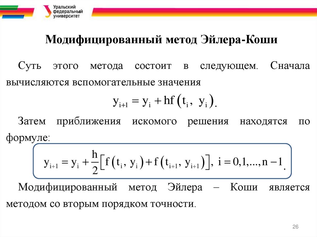 Модифицированный метод Эйлера-КошиСуть этого метода состоит в следующем.