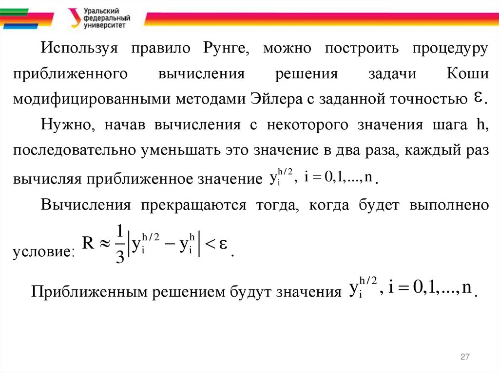Используя правило Рунге, можно построить процедуруприближенного вычисления решения задачи Коши методом