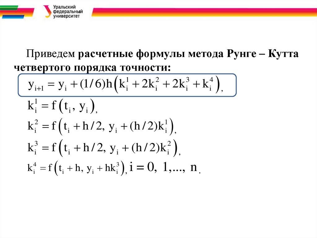 Приведем расчетные формулы метода Рунге – Куттачетвертого порядка точности: