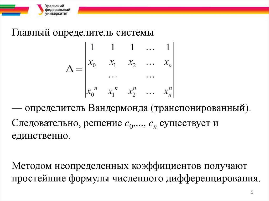 Главный определитель системы— определитель Вандермонда (транспонированный).