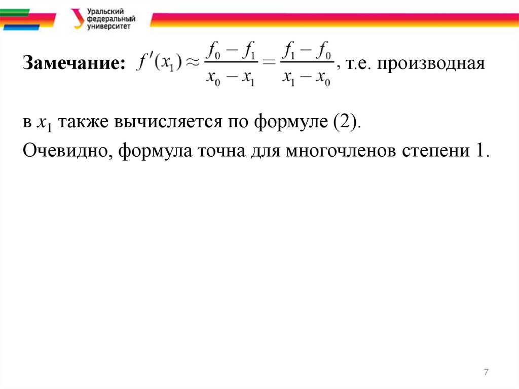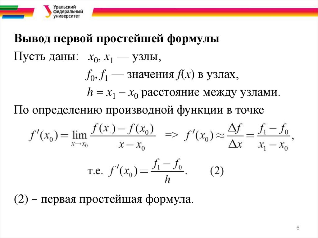 Вывод первой простейшей формулыПусть даны: x0, x1 — узлы,