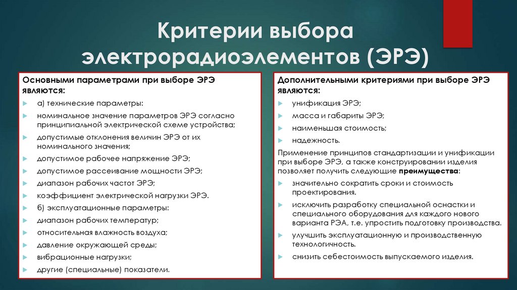 6. Критерии выбора электрорадиоэлементов (ЭРЭ)