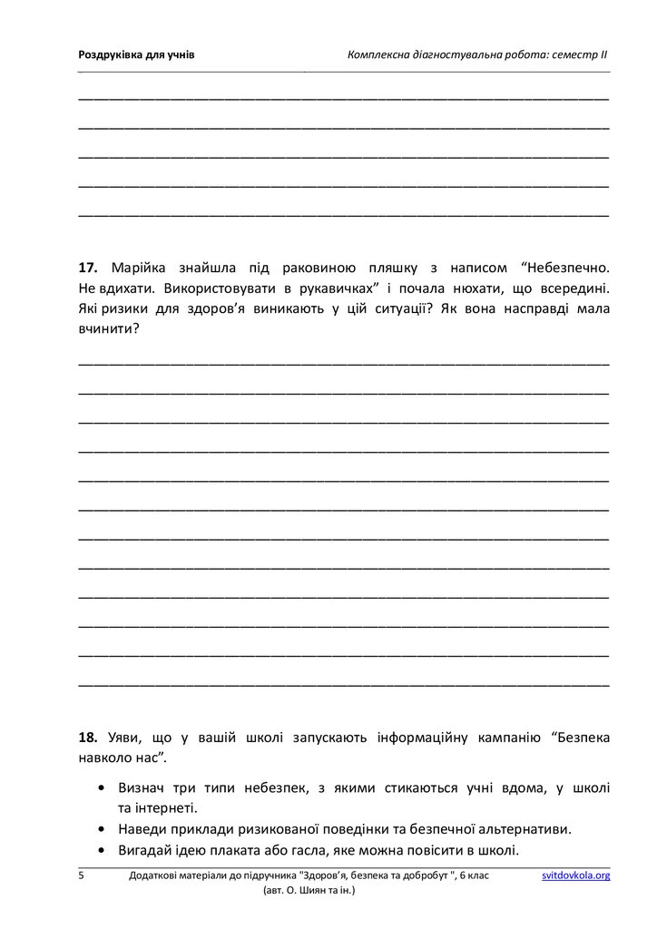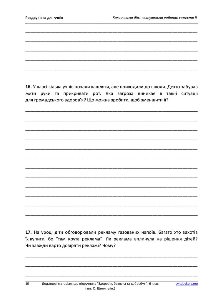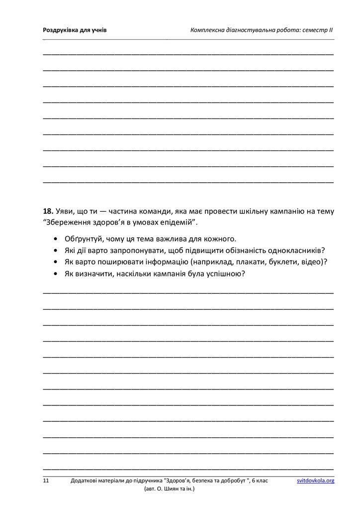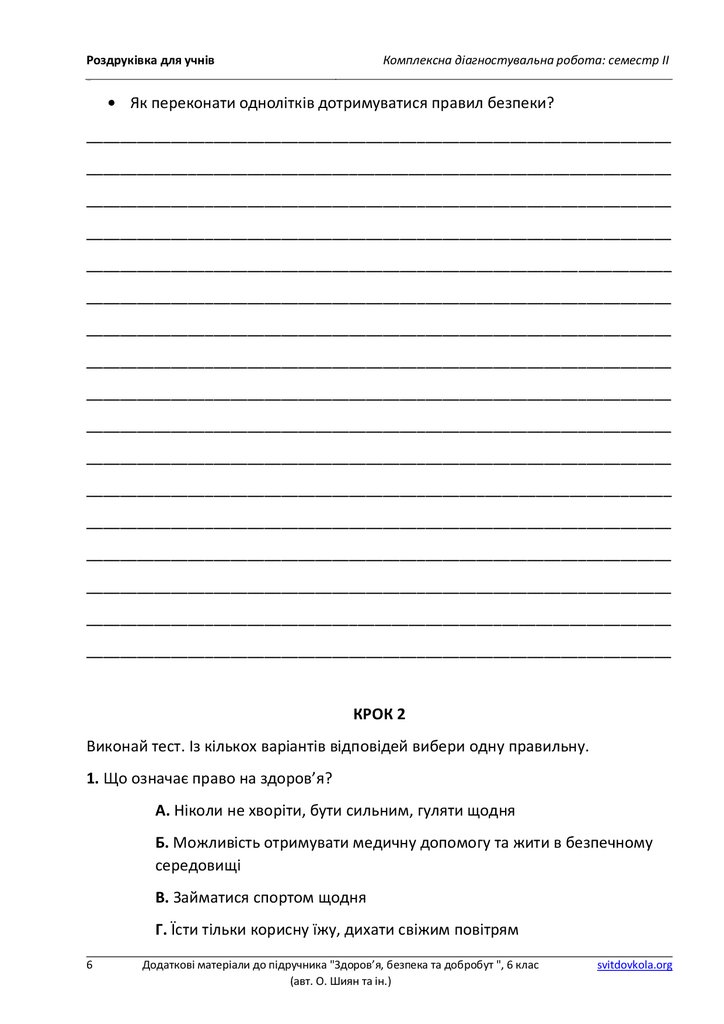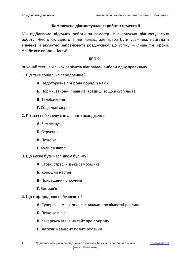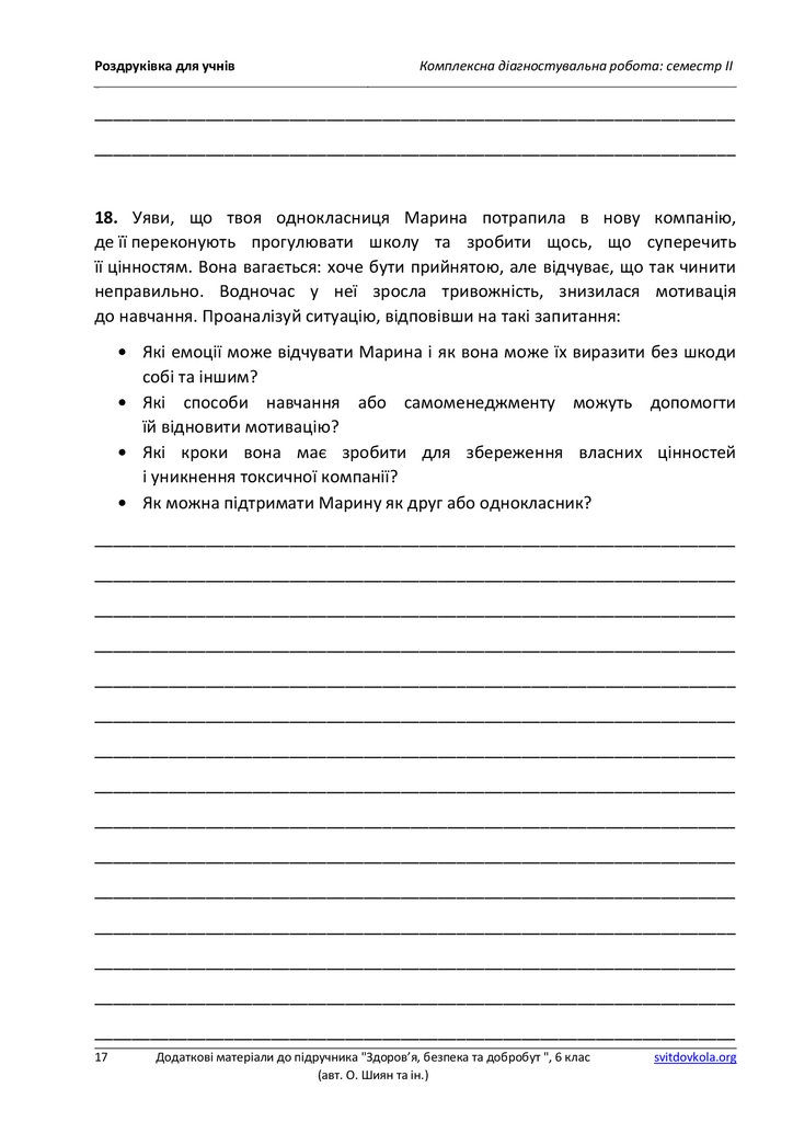 Роздруківка для учнівКомплексна діагностувальна робота: семестр ІІ