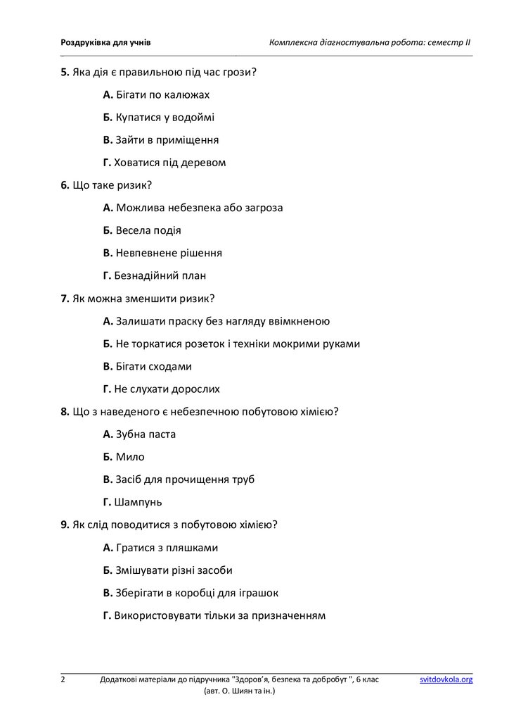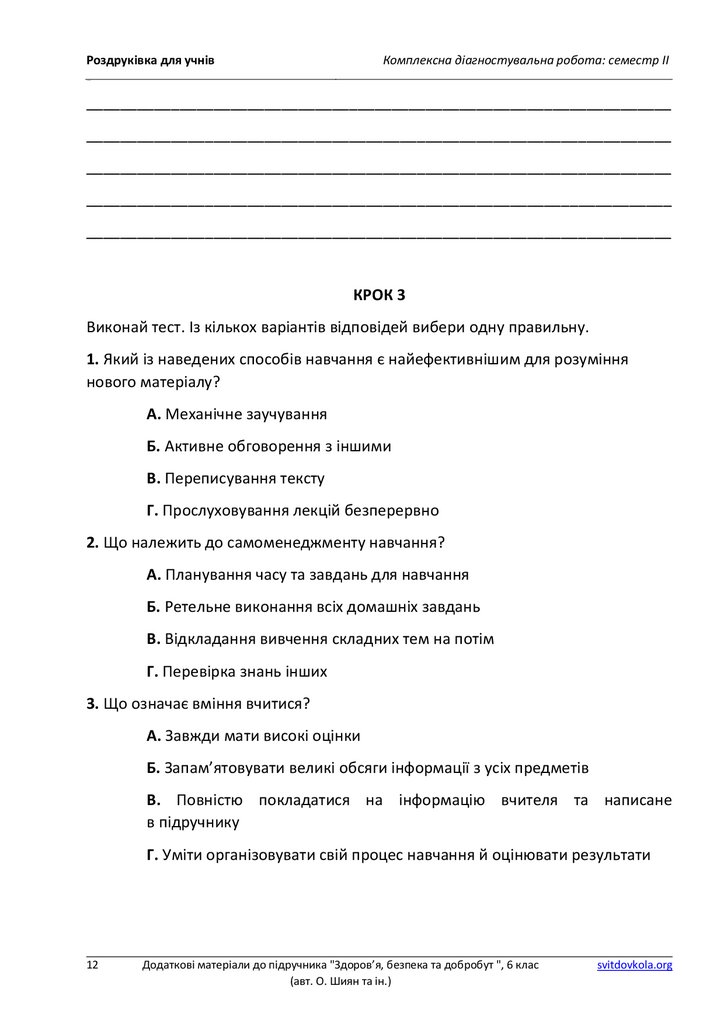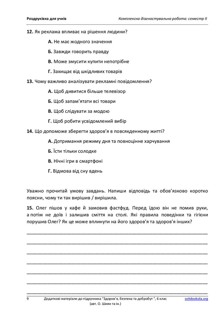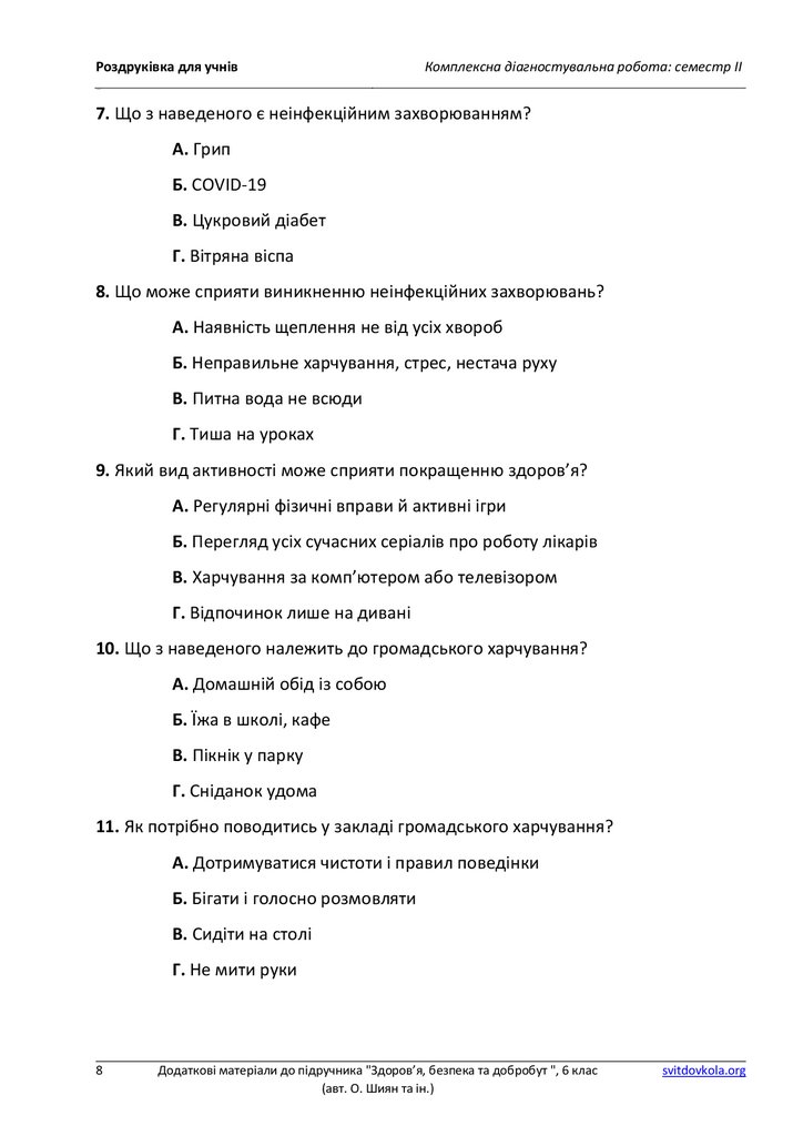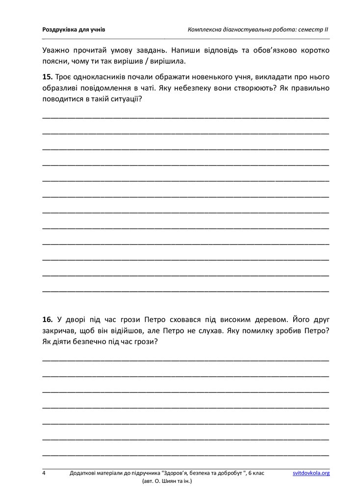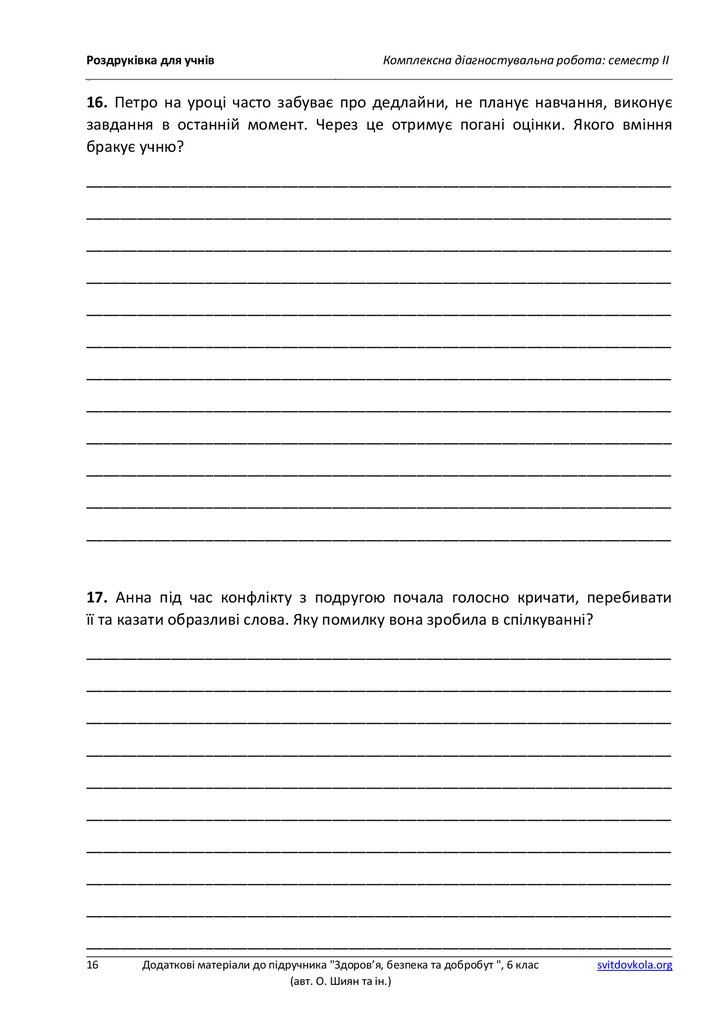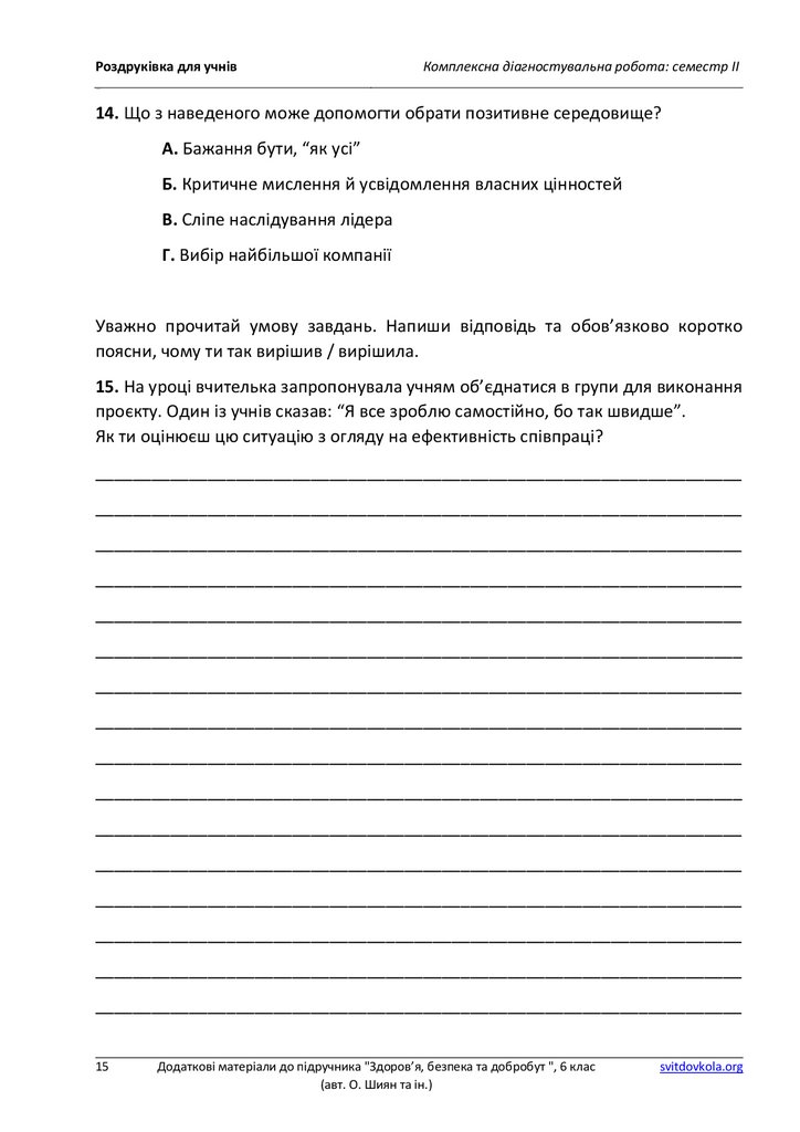 Роздруківка для учнівКомплексна діагностувальна робота: семестр ІІ