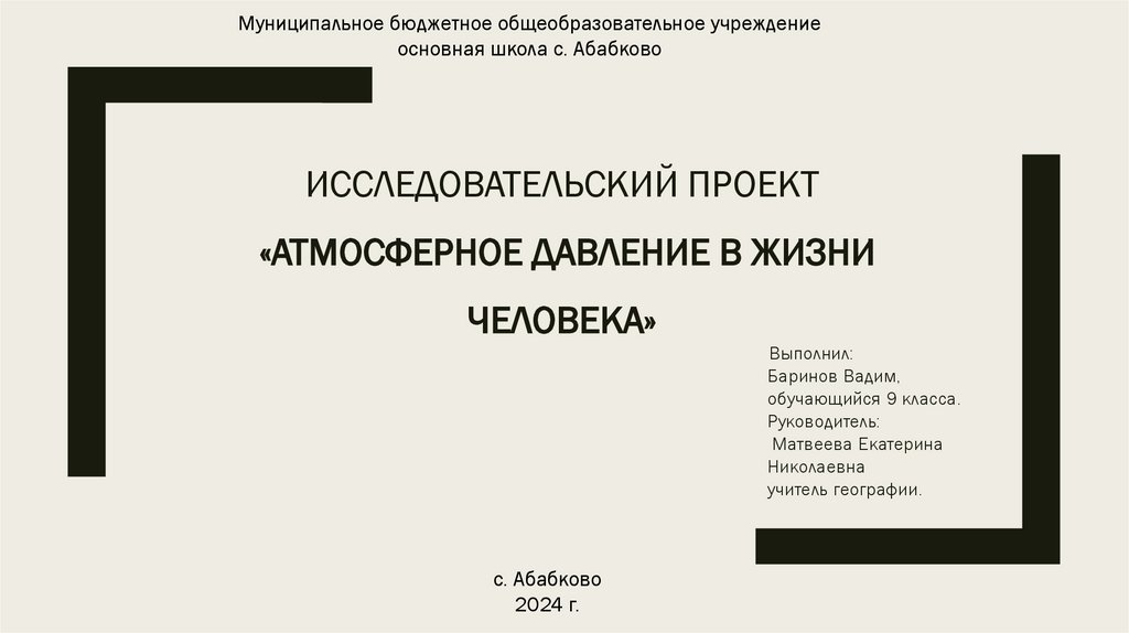 1. Исследовательский проект «Атмосферное давление в жизни человека»