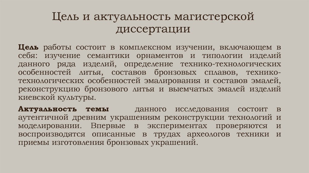 Магистерская презентация на тему: «Исследование художественных и технико-технологических