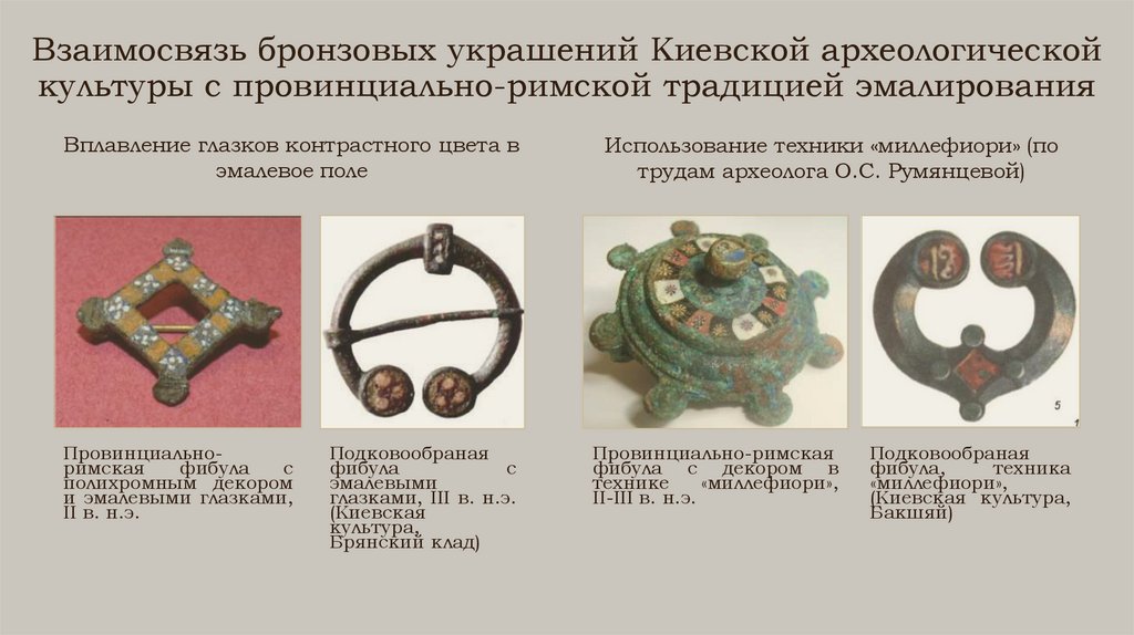 особенностей выемчатых эмалей бронзовых украшений Киевской культуры III – V вв. н.э.».