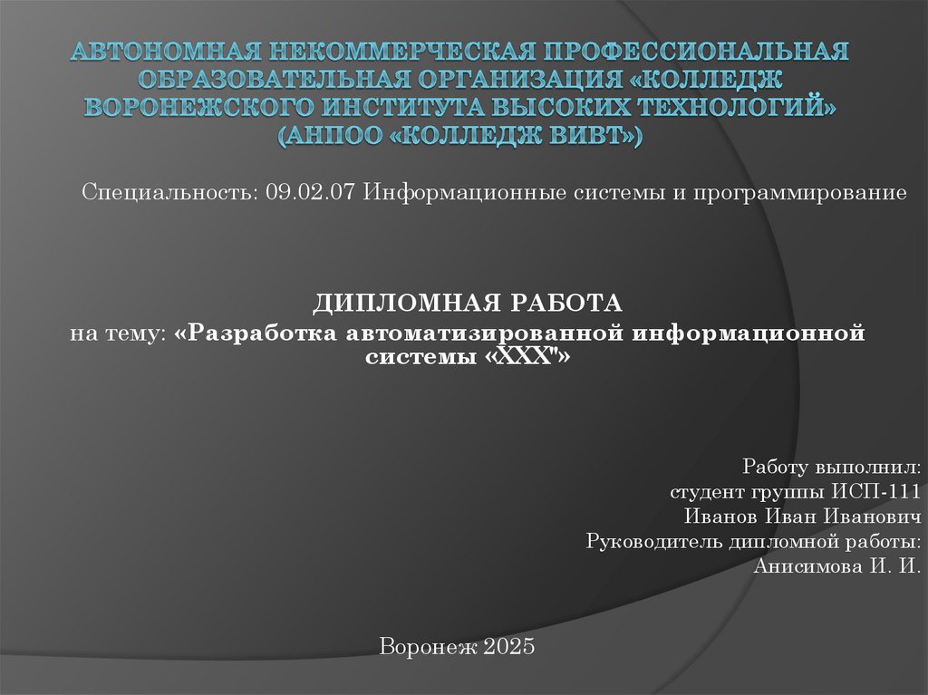 1. Автономная некоммерческая профессиональная образовательная организация «Колледж Воронежского института высоких технологий»