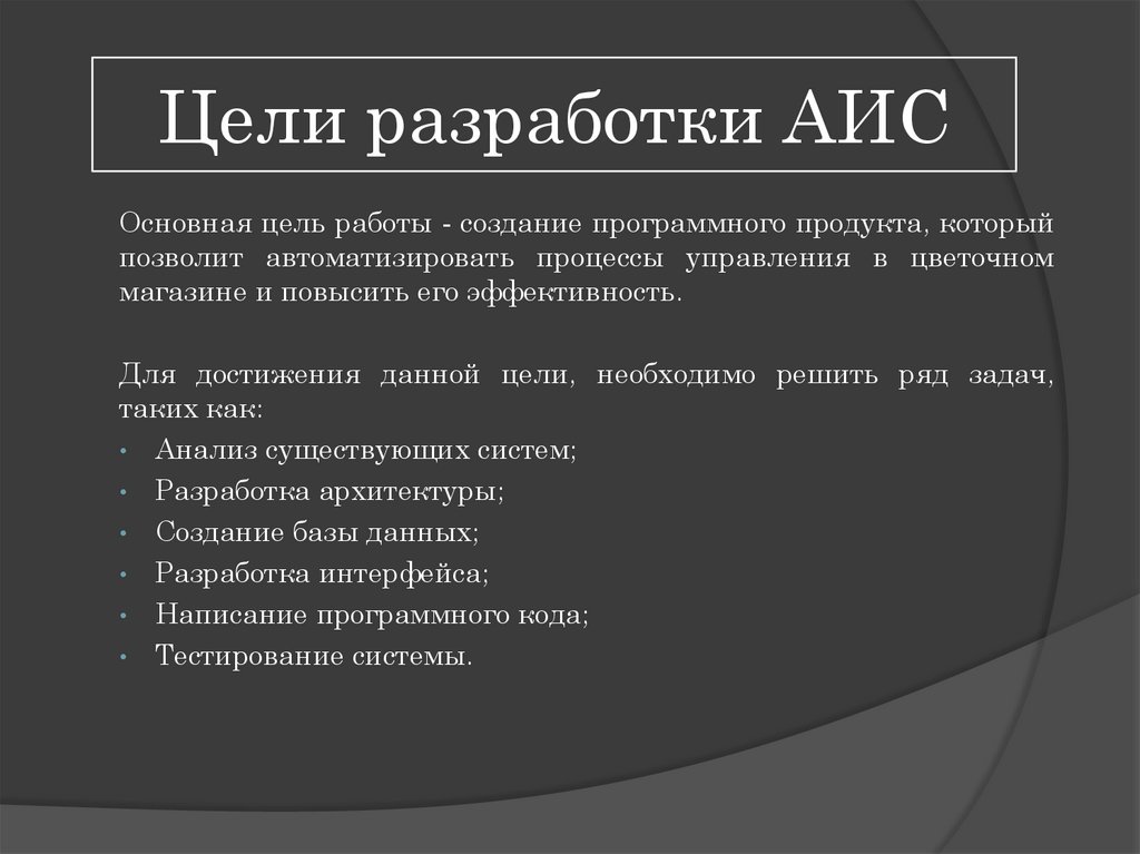Основная цель работы - создание программного продукта, которыйпозволит автоматизировать процессы управления в цветочном