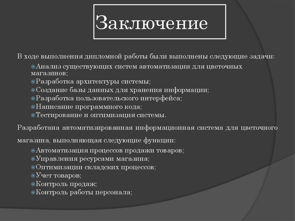 В ходе выполнения дипломной работы были выполнены следующие задачи:Анализ существующих систем автоматизации для цветочных
