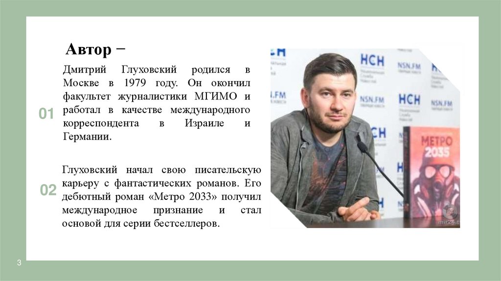Современный писатель Дмитрий Глуховский, роман “Метро 2035”. Индивидуальный проект по литературе