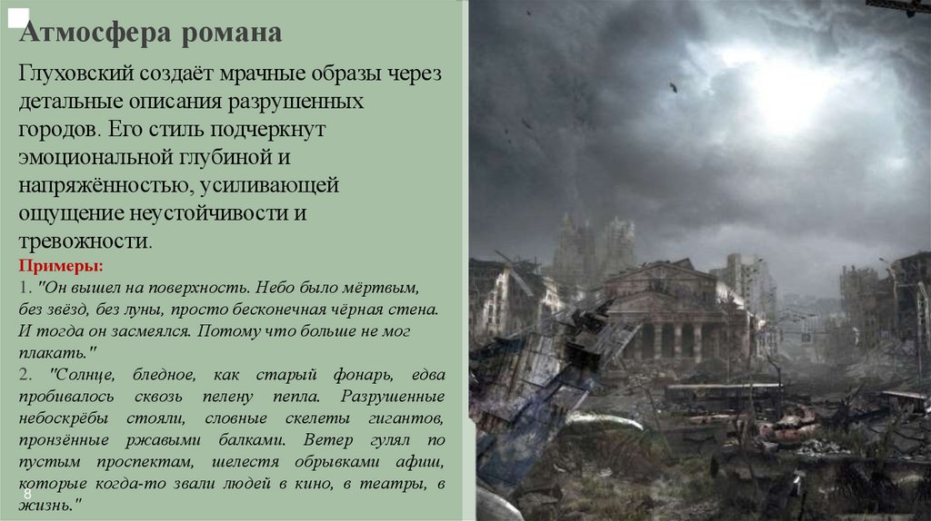 Атмосфера романаГлуховский создаёт мрачные образы через