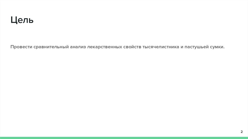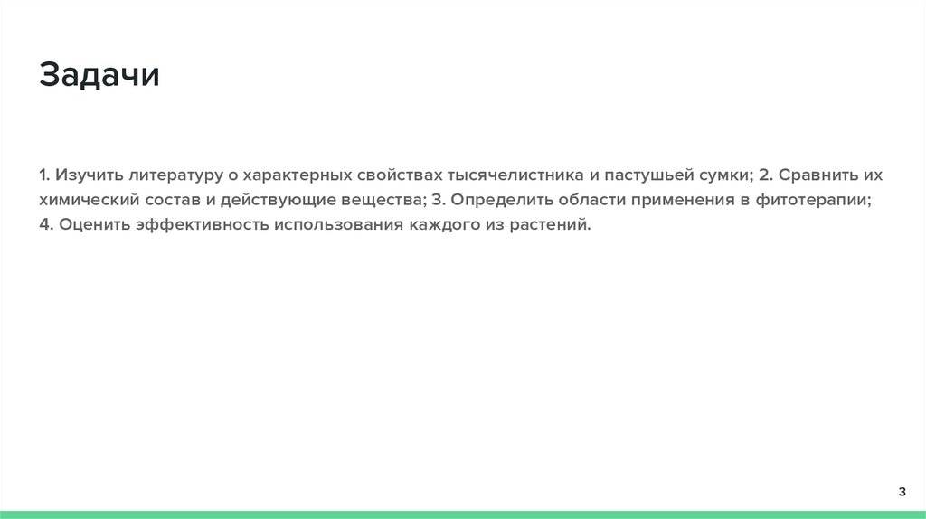 Задачи1. Изучить литературу о характерных свойствах тысячелистника и пастушьей сумки; 2. Сравнить их