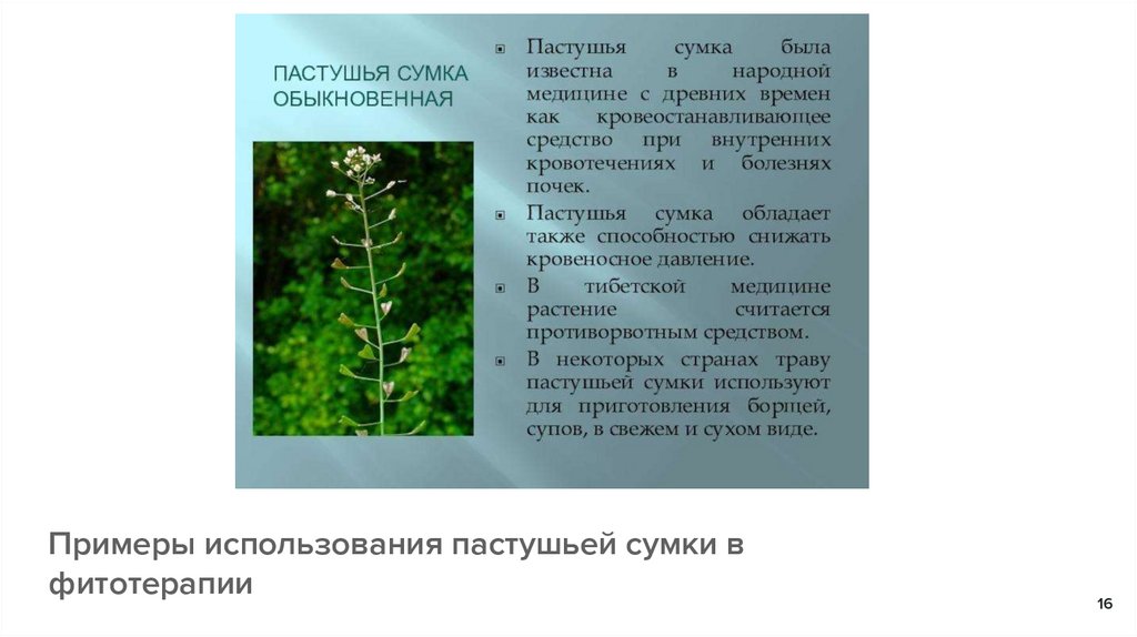 растений. 4. Википедия и интернет-энциклопедии о тысячелистнике и пастушьей сумке. 5.