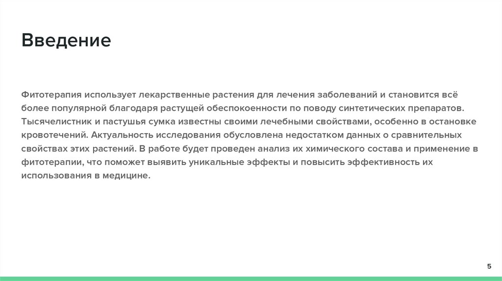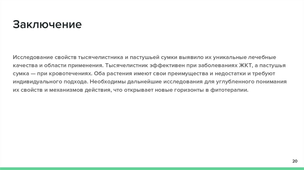 ЗаключениеИсследование свойств тысячелистника и пастушьей сумки выявило их уникальные лечебные