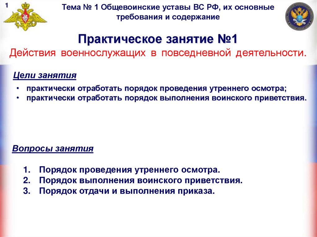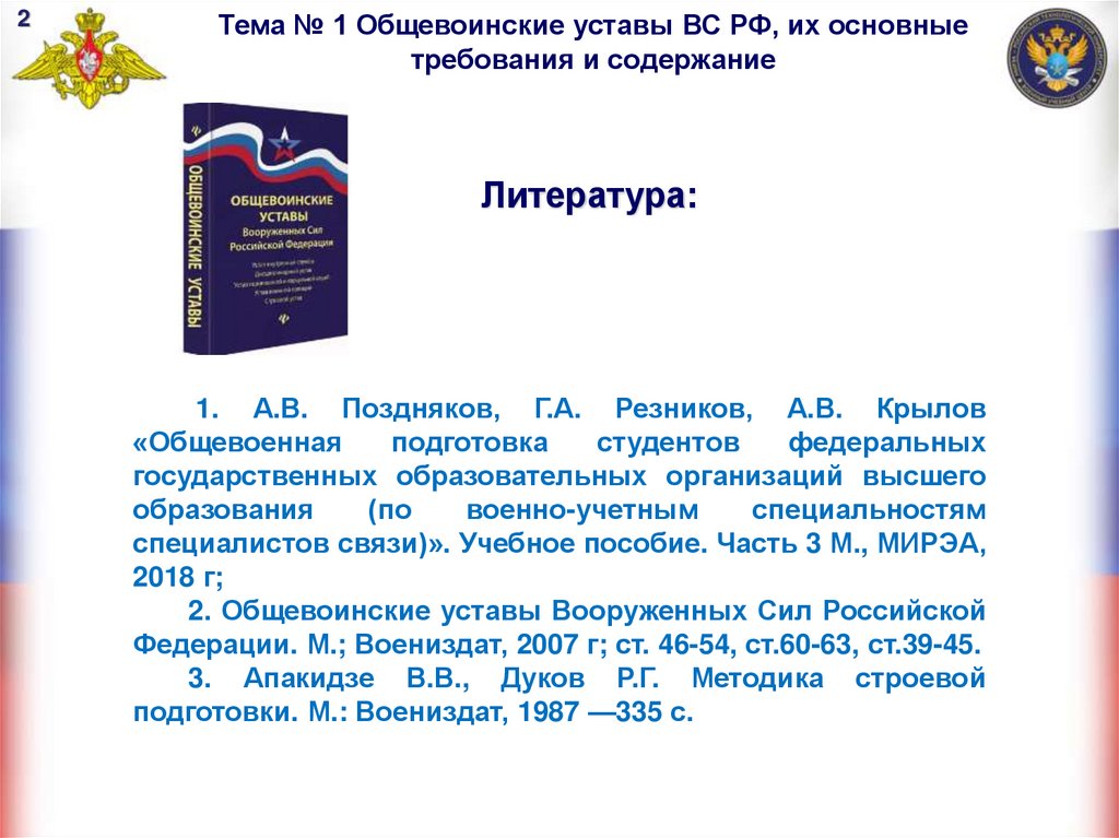 2Тема № 1 Общевоинские уставы ВС РФ, их основные