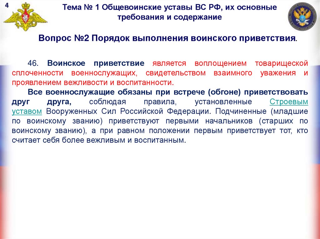4Тема № 1 Общевоинские уставы ВС РФ, их основные