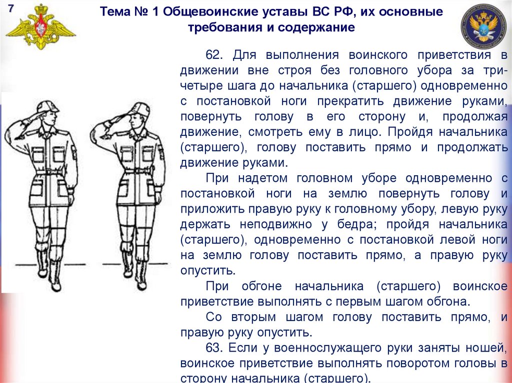 7Тема № 1 Общевоинские уставы ВС РФ, их основные