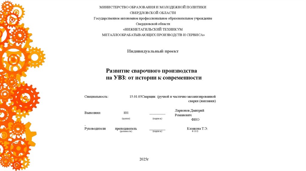 Объект исследования:Сварочное производство Уралвагонзавода (УВЗ) в целом