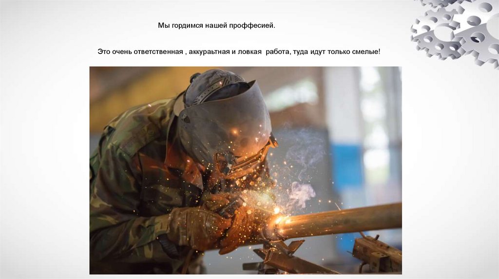 Мы гордимся нашей проффесией.Это очень ответственная , аккураьтная и ловкая работа, туда идут только смелые!