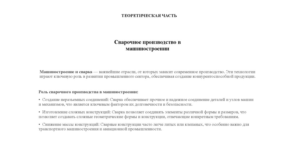ТЕОРЕТИЧЕСКАЯ ЧАСТЬСварочное производство в