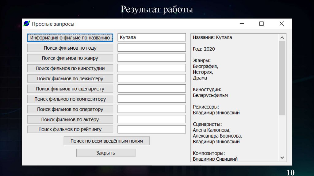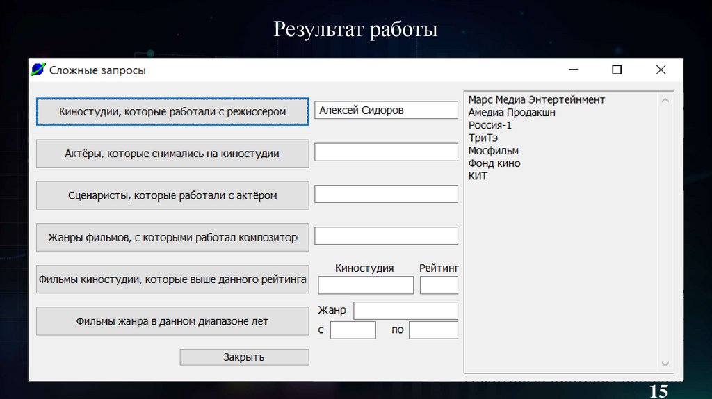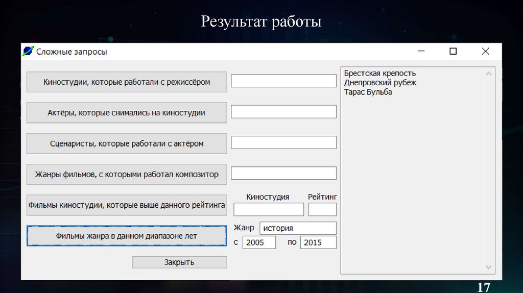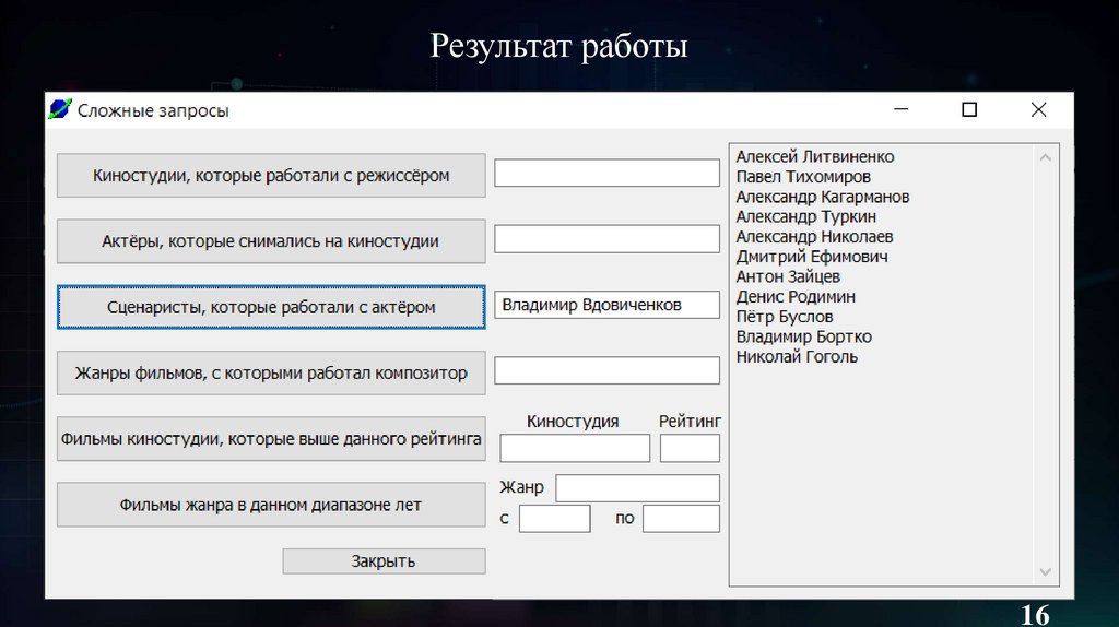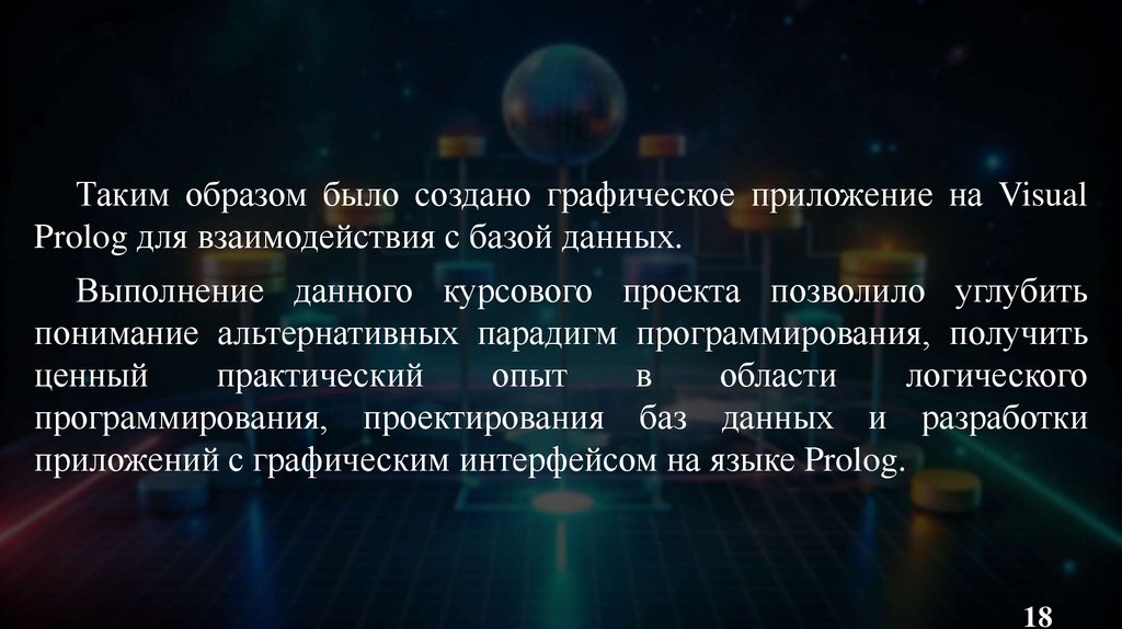 Таким образом было создано графическое приложение на VisualProlog для взаимодействия с базой данных.