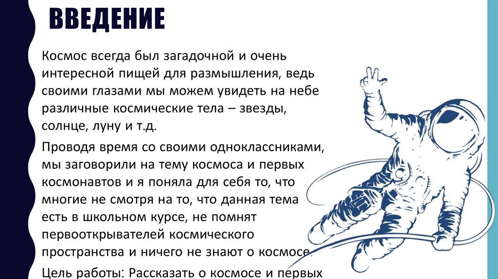 Цель работы: Рассказать о космосе и первых