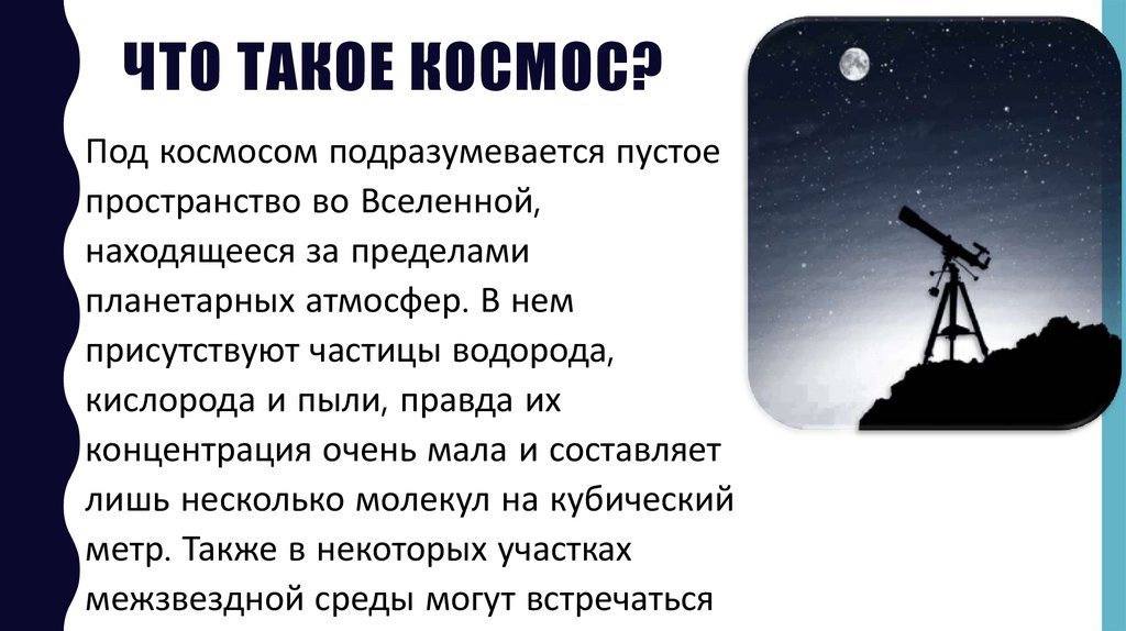 ЧТО ТАКОЕ КОСМОС?Под космосом подразумевается пустое
