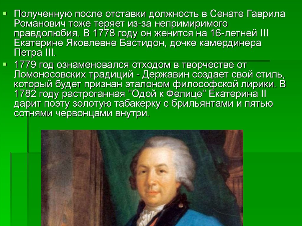 1782 году растроганная "Одой к Фелице" Екатерина II