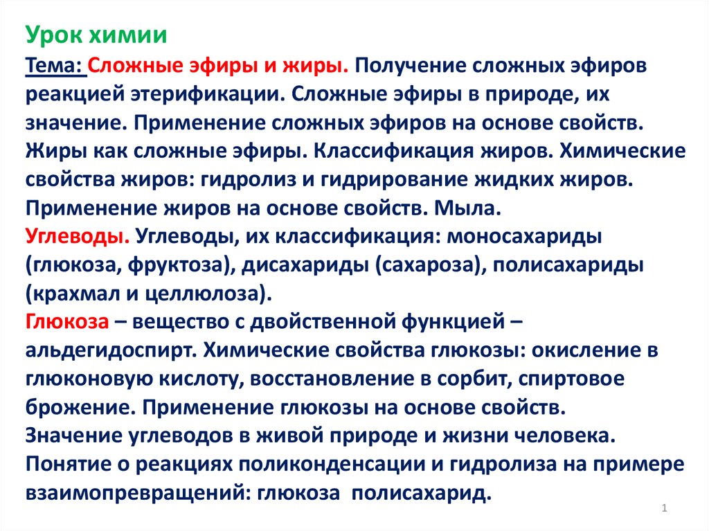 Урок химииТема: Сложные эфиры и жиры. Получение сложных эфиров