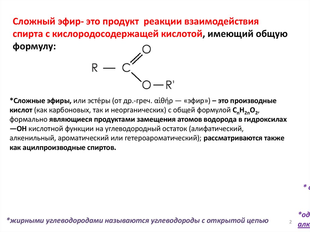 *Сложные эфиры, или эсте́ры (от др.-греч. αἰθήρ — «эфир») – это производные