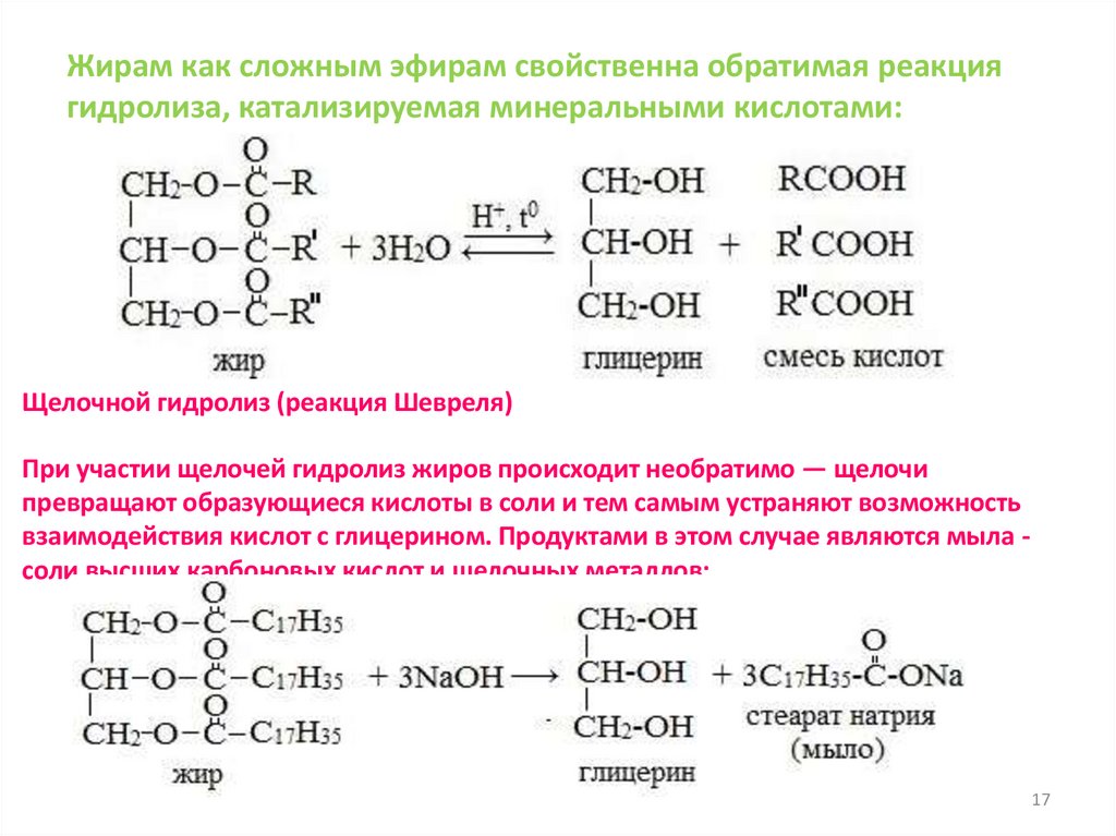 свойства жиров: гидролиз и гидрирование жидких жиров.
