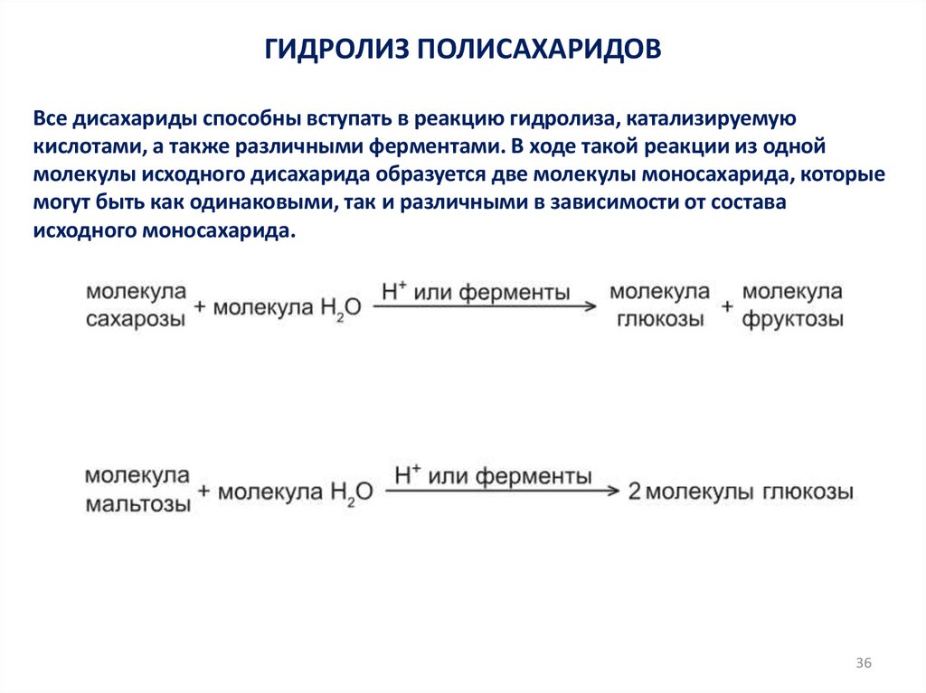 ГИДРОЛИЗ ПОЛИСАХАРИДОВВсе дисахариды способны вступать в реакцию гидролиза, катализируемую