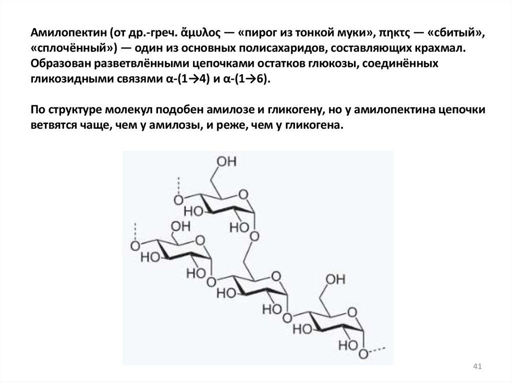ветвятся чаще, чем у амилозы, и реже, чем у гликогена.