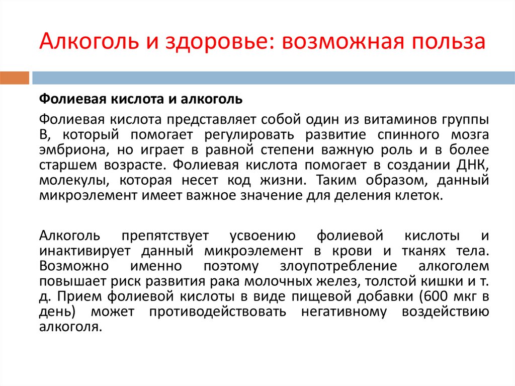 Фолиевая кислота и алкогольФолиевая кислота представляет собой один из витаминов группы