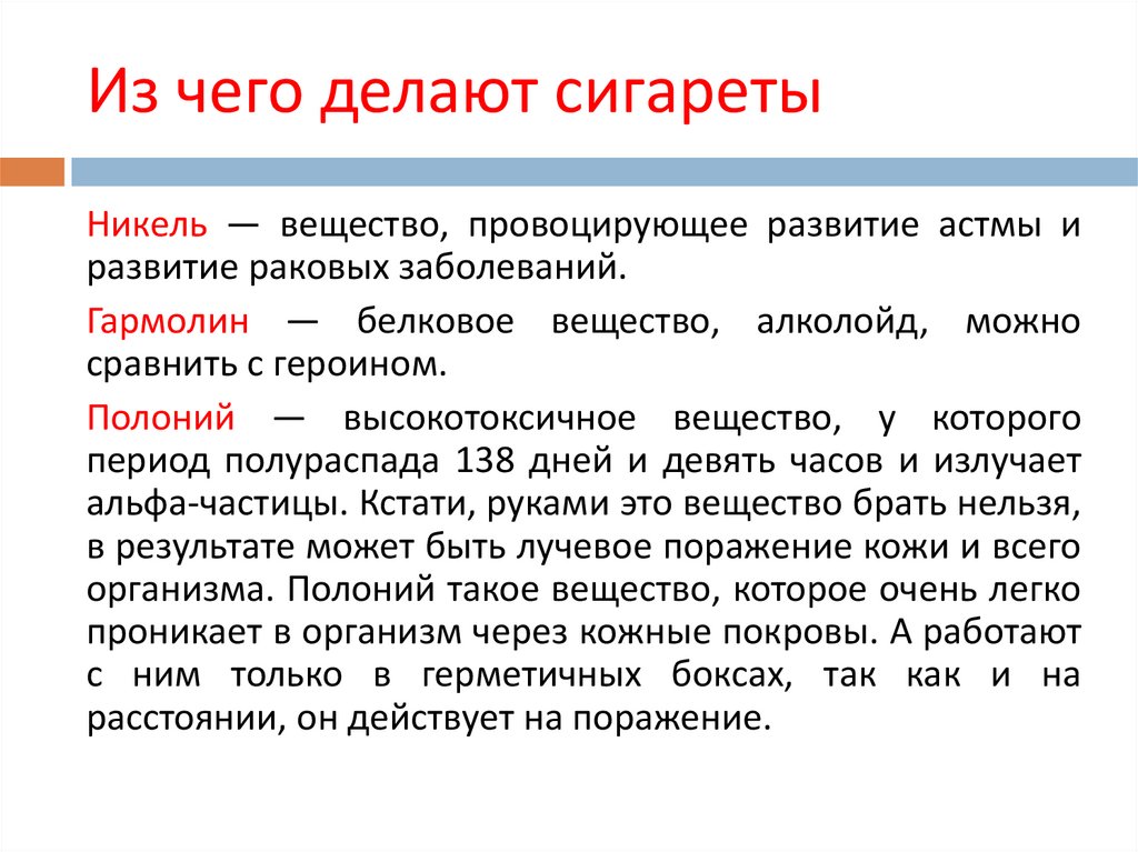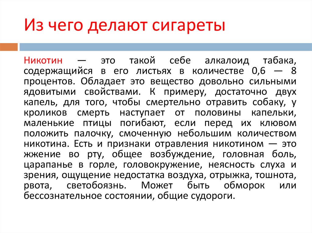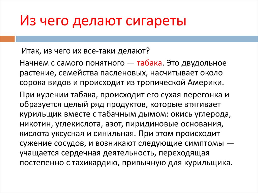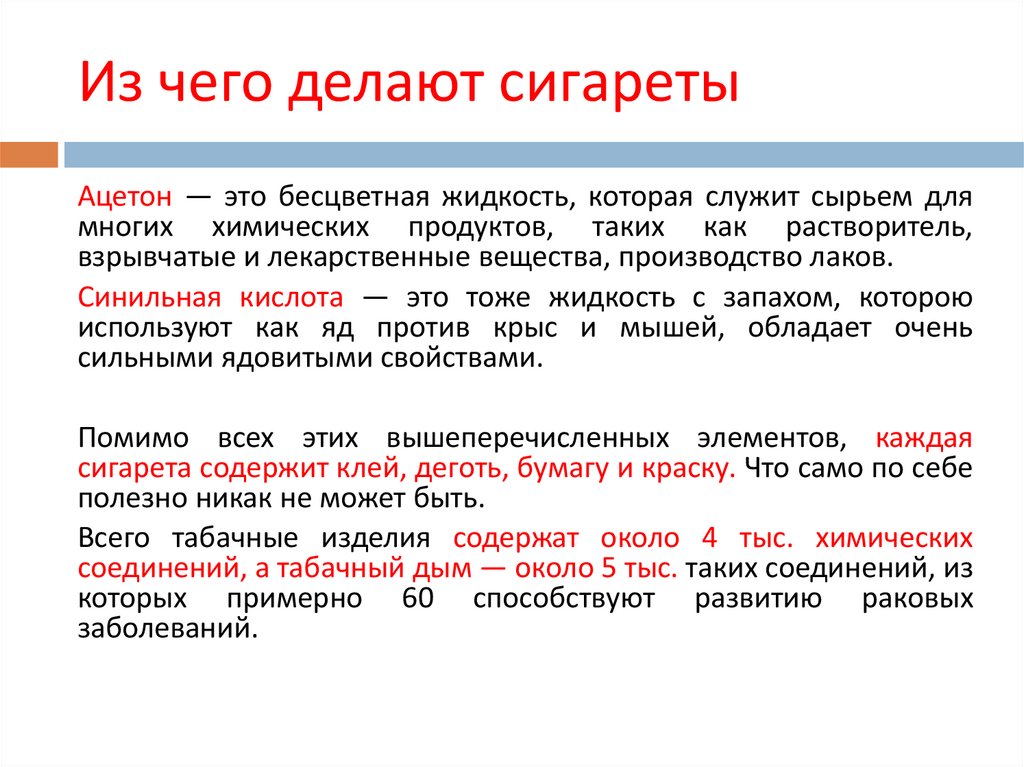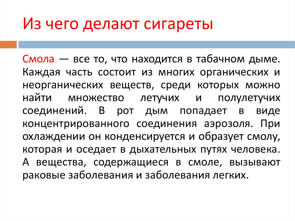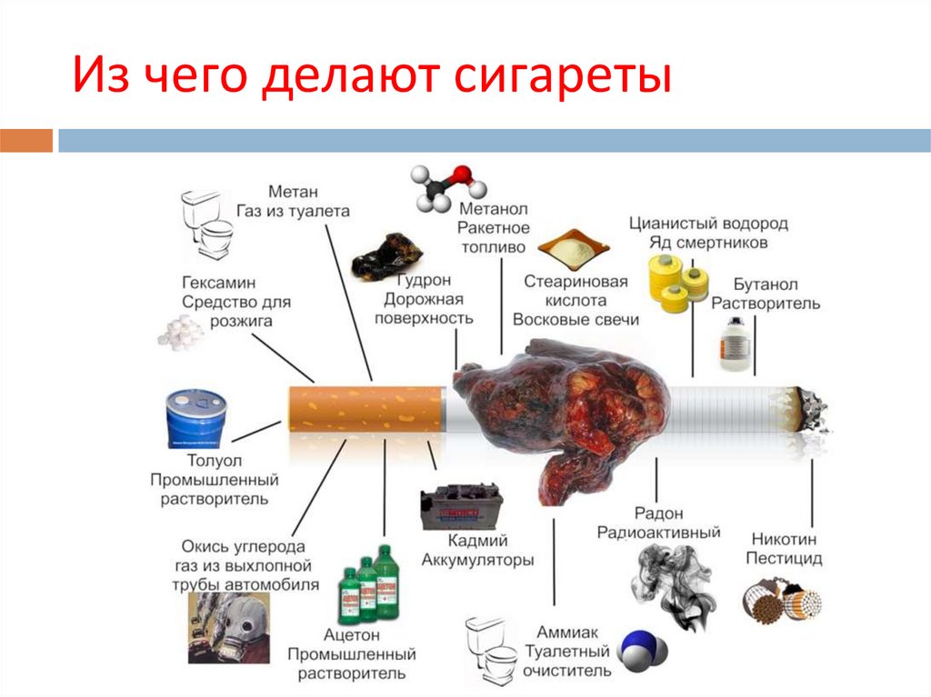 сигарета содержит клей, деготь, бумагу и краску. Что само по себе