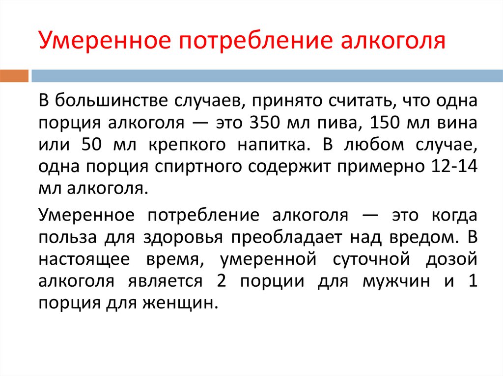 В большинстве случаев, принято считать, что однапорция алкоголя — это 350 мл пива, 150 мл вина
