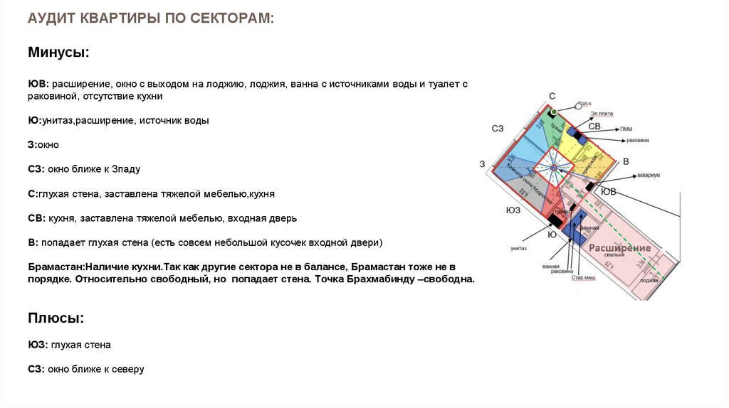 АУДИТ КВАРТИРЫ ПО СЕКТОРАМ:Минусы: