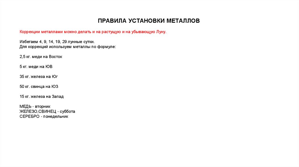 ПРАВИЛА УСТАНОВКИ МЕТАЛЛОВКоррекции металлами можно делать и на растущую и на убывающую Луну.