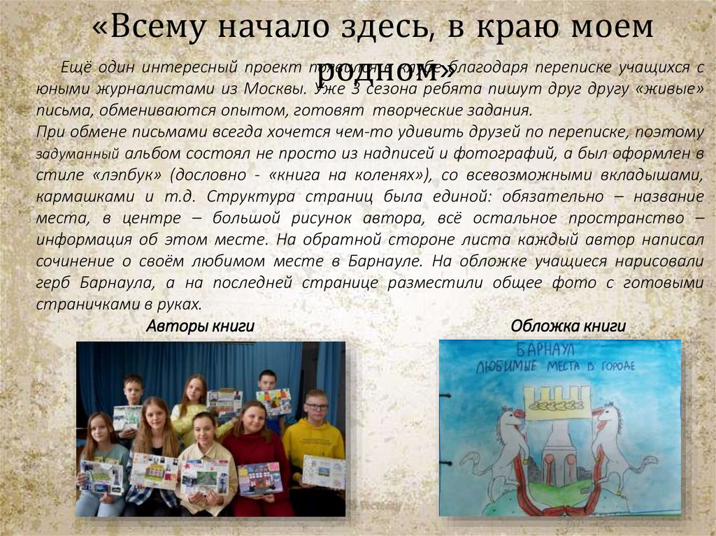 сочинение о своём любимом месте в Барнауле. На обложке учащиеся нарисовали